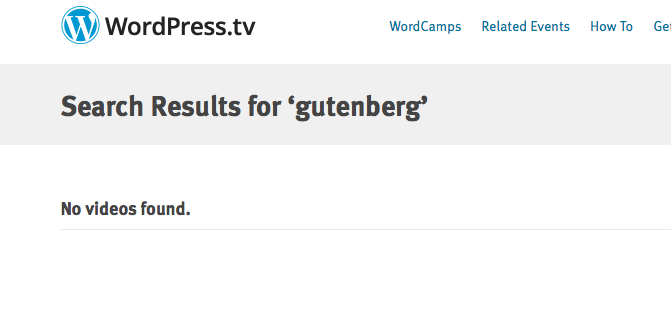 For the past several weeks I have been keeping my eye out for a WordCamp video that was about the Gutenberg Editor Plugin. All of my searches have returned this result…